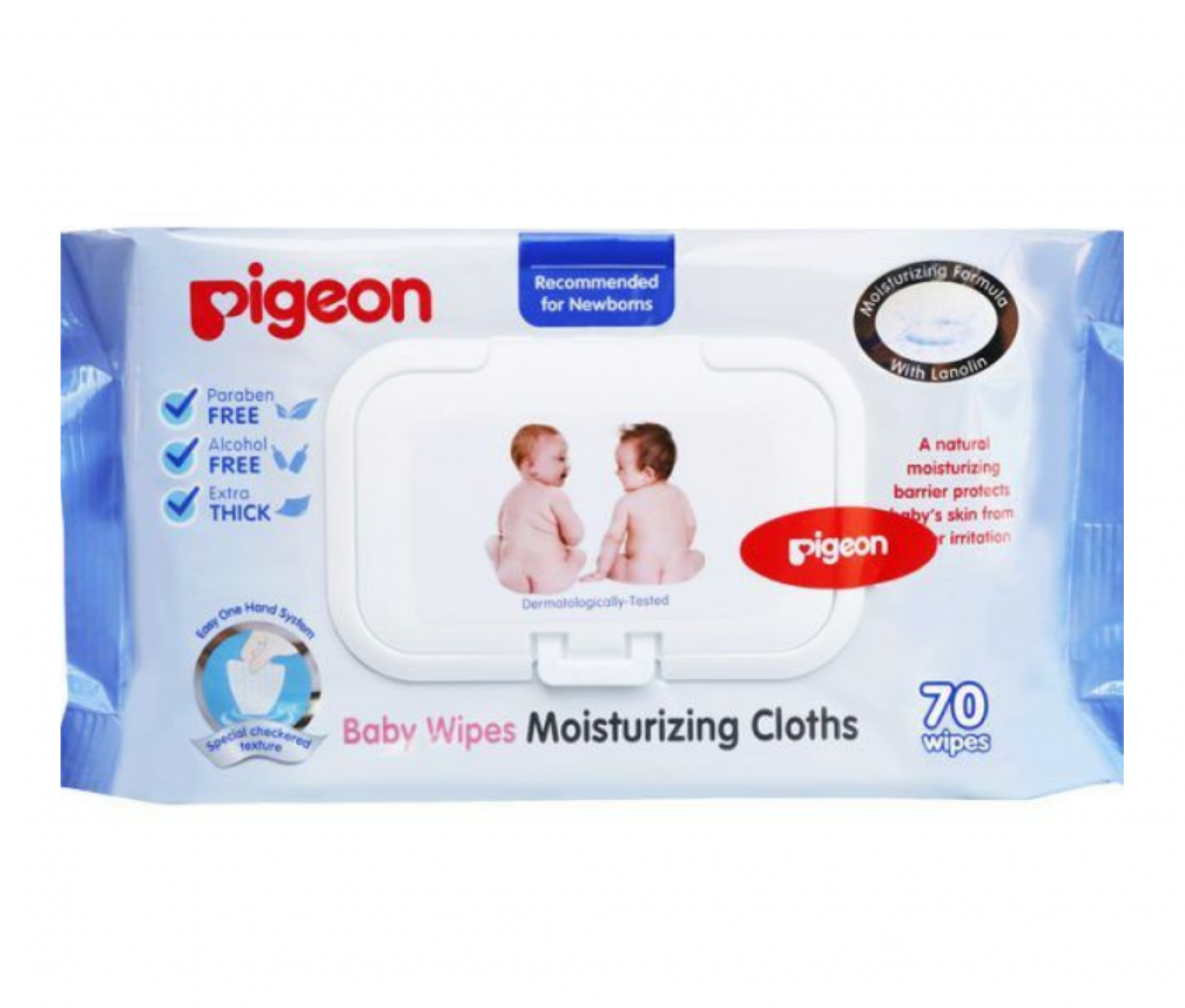 PIGEON BABY WIPES MOISTURIZING CLOTHS 70S, 2 IN 1 BAG [26366]